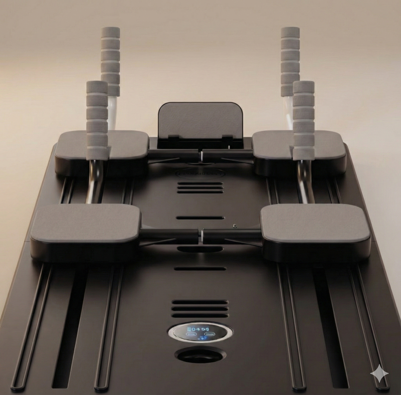 Notre réformateur 5-en-1 combine technologie LED et résistance automatique pour sculpter abdos, fessiers et bras depuis chez vous.